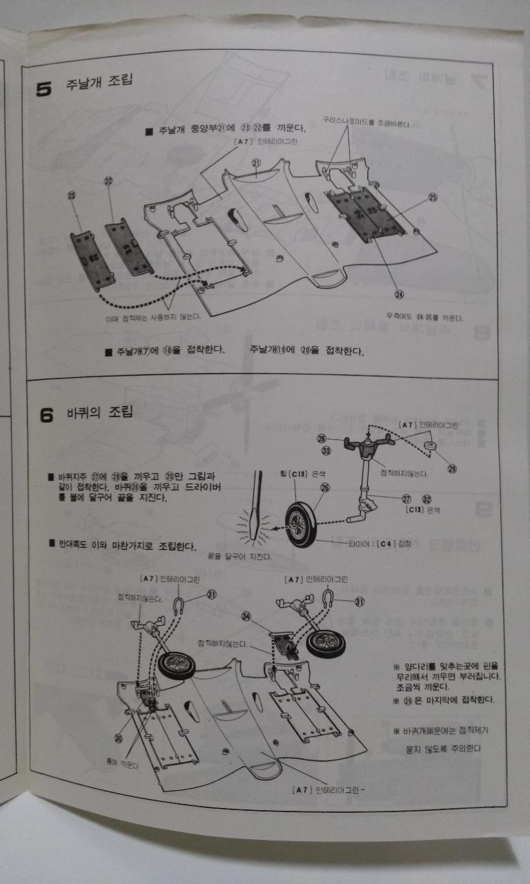 1 ~6 스테이지가 나타나 있습니다. 지금의 기준으로 어렵지 않아 보이지만, 당시 어린 소년들에게는 한 단계 한 단계 결코 쉽지 않았던 작업이었습니다. 가동 팟츠도 있고, 접착제를 사용하다 보니 주의를 기울여서 신중하게 작업을 했어야 했죠.