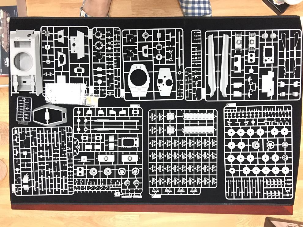 타콤키트를 베이스로 하였다는데 타콤 킹타이거를 만들어본적이 없어서 ㅜㅜ 궤도는 반연결식, 포신은 분할된 인젝션, 야간투시경 포함 정도 밖에 특이사항을 모르겠네요