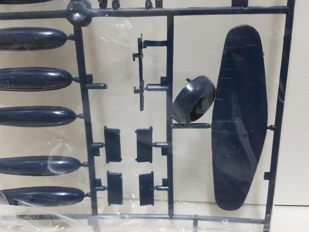 연료통, 꼬리날게, 렌딩기어 커더 등의 부품이 포함된 러너입니다.