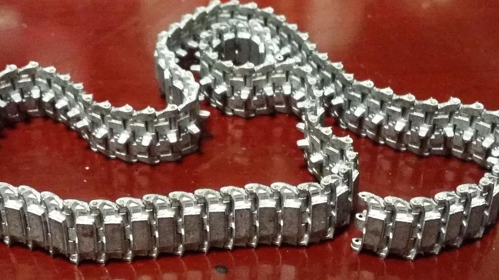 화이트메탈의 무른감이 느껴지느 자잘한 트랙들과 트랙을 연결하는 철사가 세트로 들어있습니다.