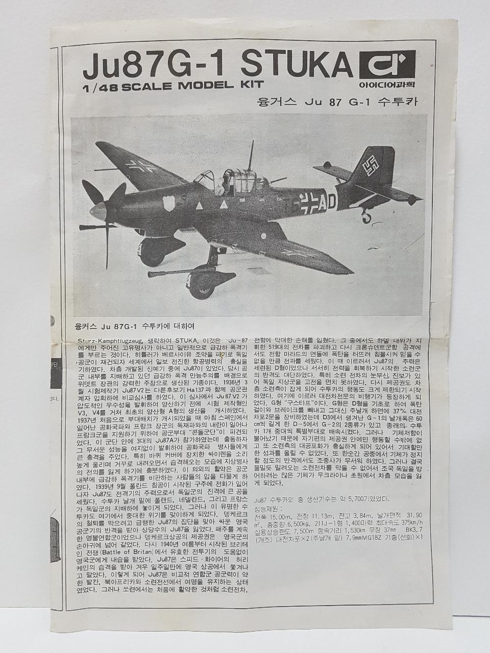 아이디어회관 1/48 수투카 JU87 G-1 의 박스아트입니다.