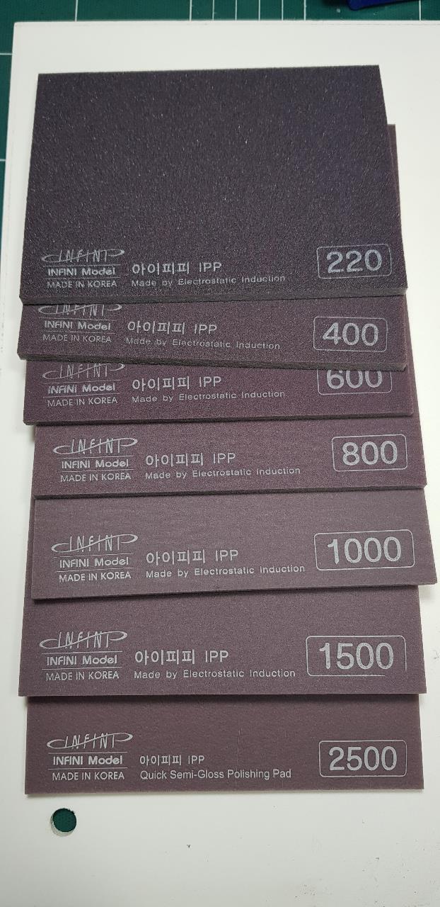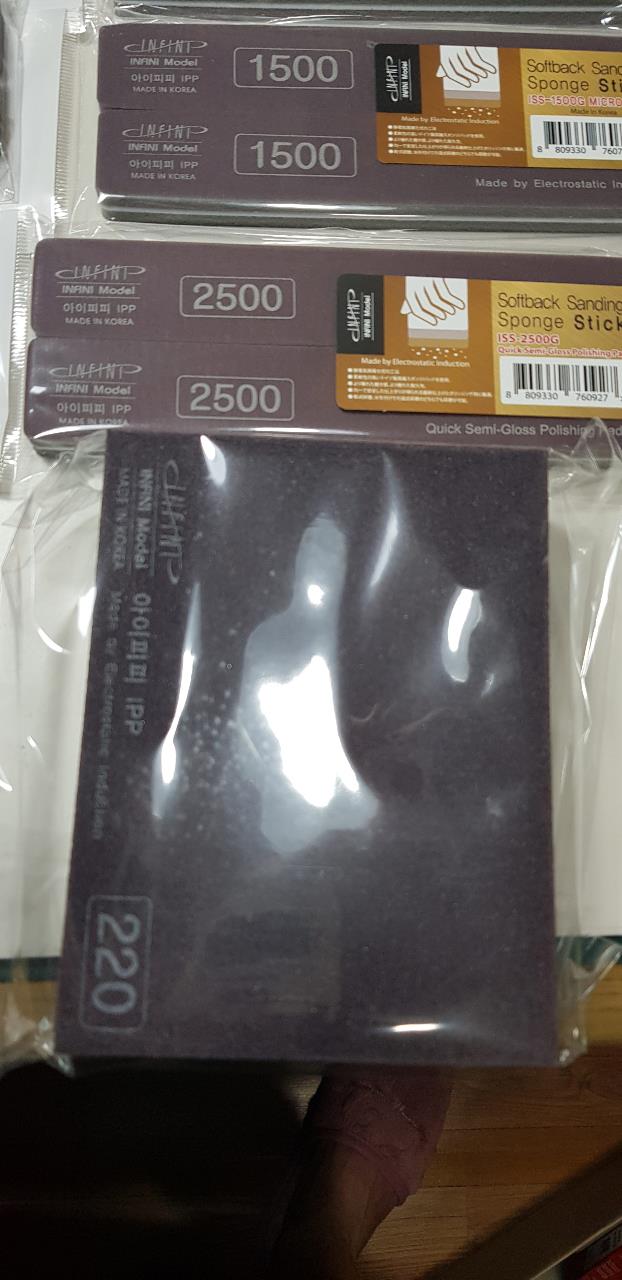 스폰지 사포는 좌측이 인피니티, 우측이 3M, 밑에것 이 마하공구 800방 입니다.