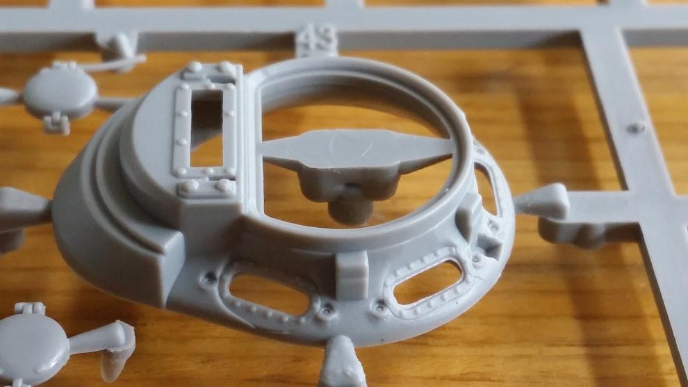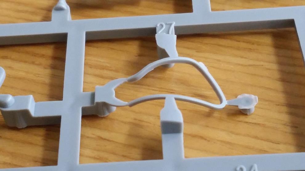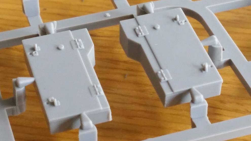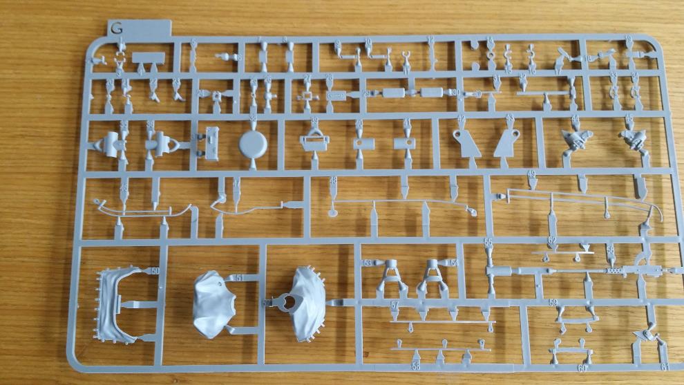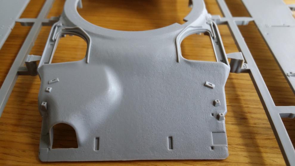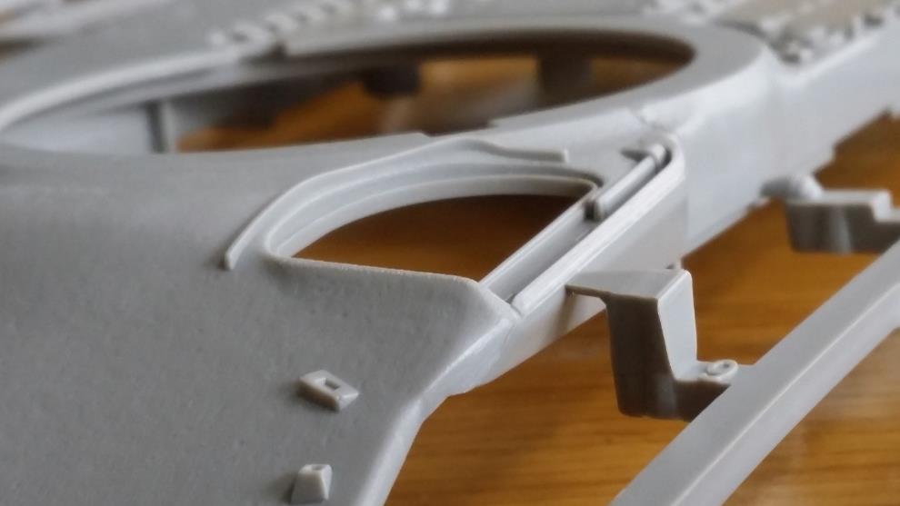 상부차체 구성품으로 샤프한 몰드로 마음에 듭니다. 엔진 머플러 커버의 두께도 얇고 조금만 갈아내면 에칭은 안써도 됩니다.