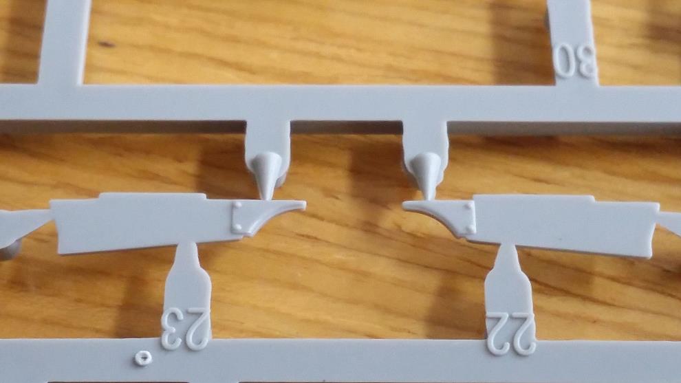 1. 0.5기관총 본체가 좌우로 분할되어 있다. 처음보는 모습으로 접합해보고 판단해야겠습니다.. 두 개의 부품이 다른 런너에 있어서 숨박꼭질하게 만듭니다. 0.3차체기관총과 달리 냉각구 표현은 좋아보입니다.