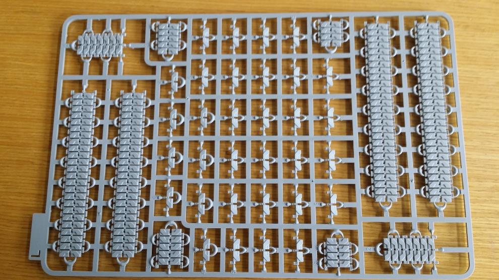 기동륜과 유도륜에 부착되는 궤도는 한 개씩 연결합니다. 두툼한 몰드가 좋고 곡선형태로 연결하는 곳에서 나타나는 현상을 성의있게 잘 표현했군요.