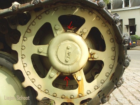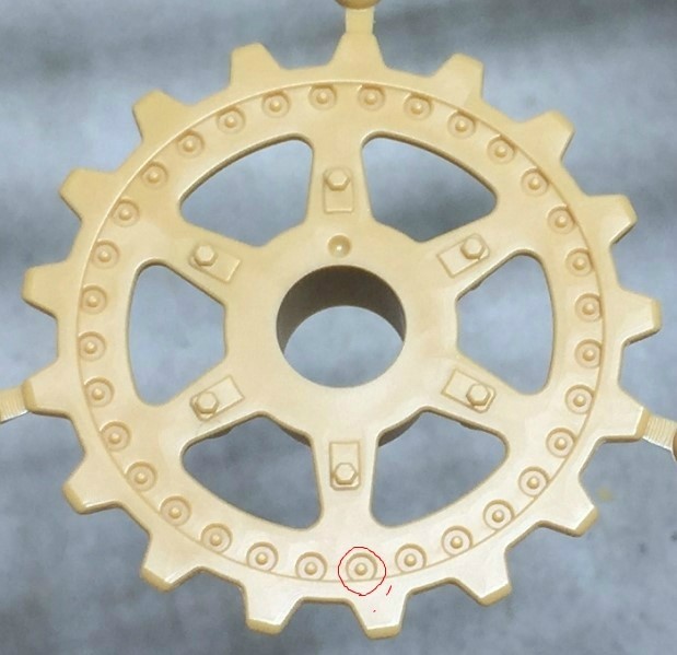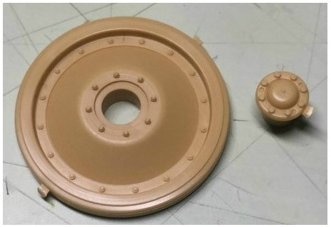 위 타미야 제품에서 생략된, 밖에서부터 3번째 줄의 볼트와 로드휠 본체 사이에 끼워지는