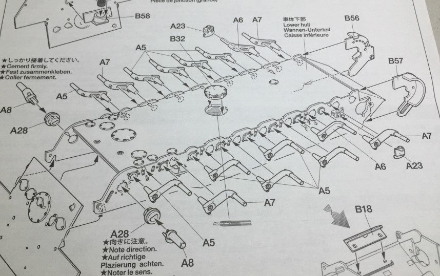 타미야, 멩, 타콤 모두 P.T. 5-2 의 106페이지의 서술에 맞는 방식의 스윙암 배치를 지시하고 있습니다.