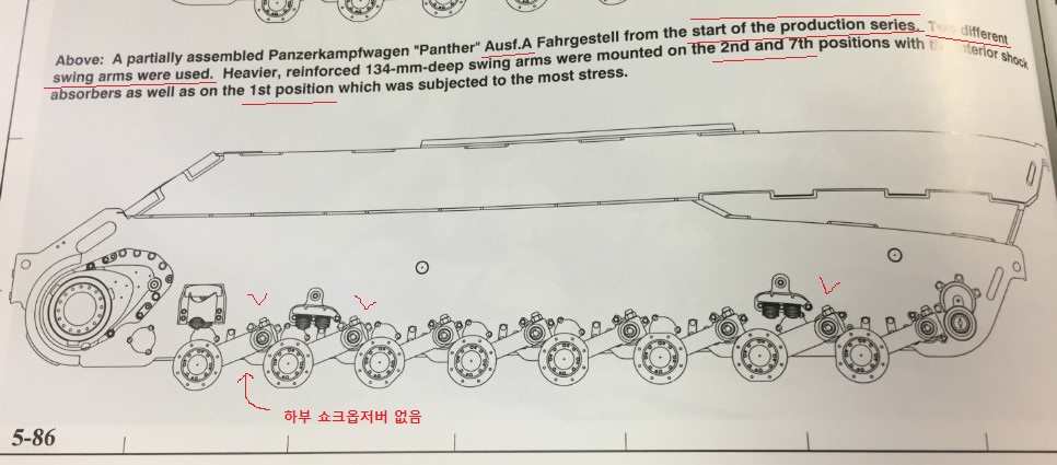 판저트렉트 5-2를 보면 A형 생산이 막 시작될 때의 스윙암 배치에 대한 도면이 나오는데