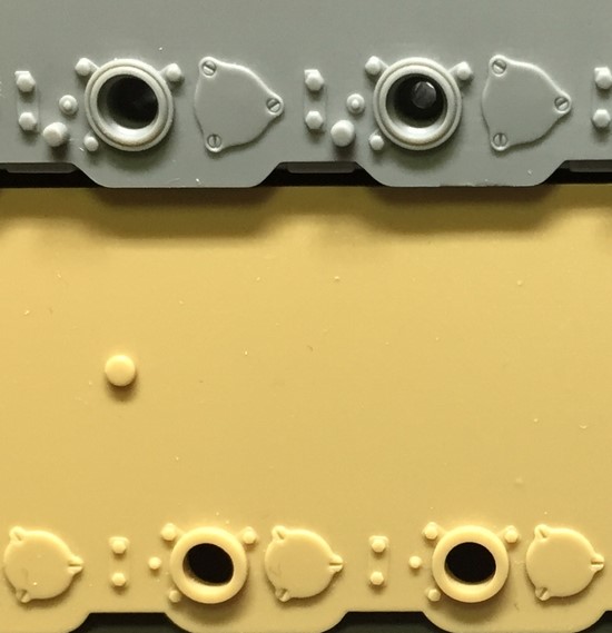 측면 하부 장갑 컷 끝단 쪽 볼트 두개도 아예 생략이 되어 있습니다.