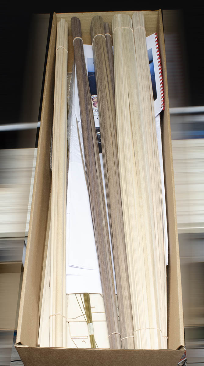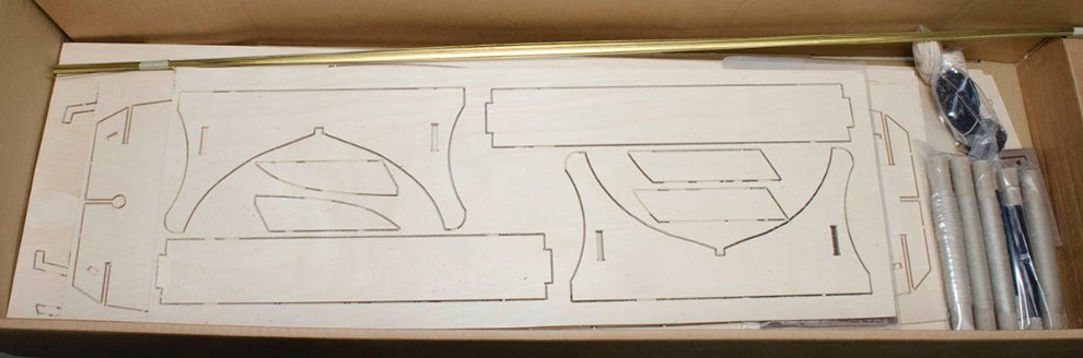 박스를 여니까 여느 목범선 키트처럼 목봉과 우드 스트립이 맞이해주는 군요. 목봉 길이가 1미터라 완성된 목범선의 위용을 짐작케 해줍니다. 저런 1미터 짜리 돛대가 3개나 박히는 겁니다. 그런데 스트립의 상태가...?