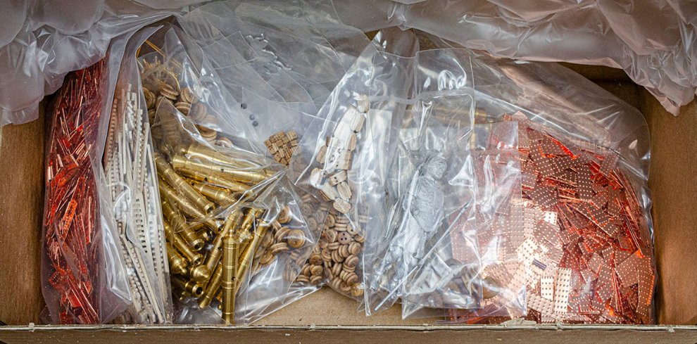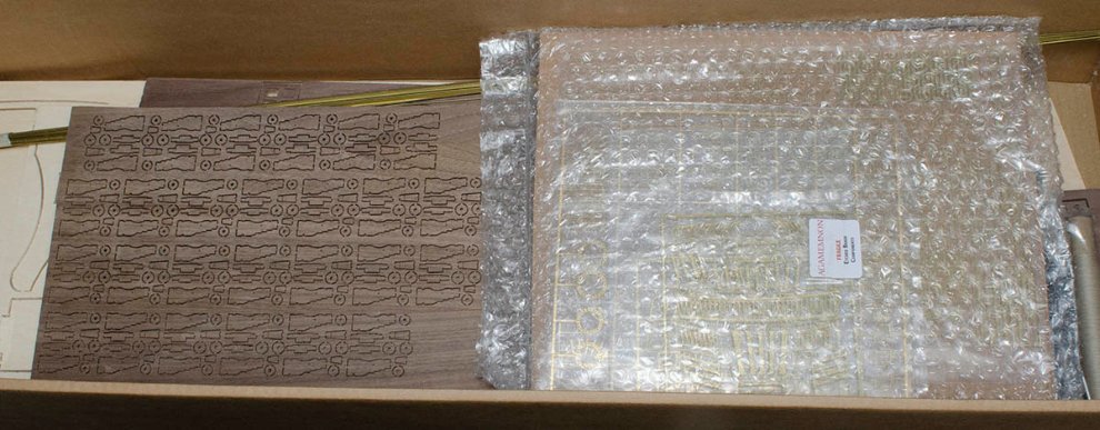 그 아래에는 CNC 로 파낸 대포 부품들과 파손되지 않도록 잘 포장된 황동 에칭 부품들이 있습니다.