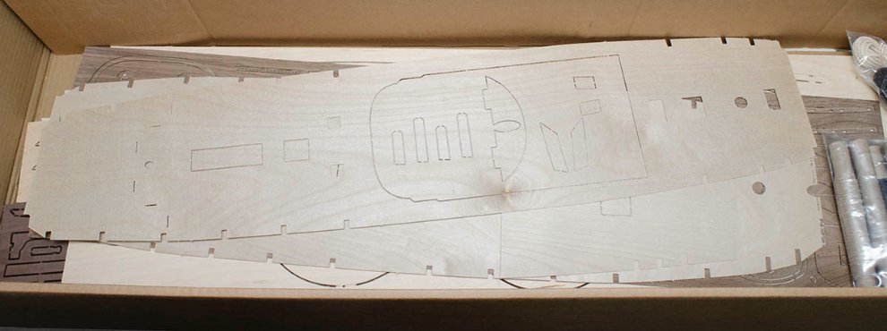 갑판도 하나의 커다랗고 때깔좋은 합판을 CNC 커팅으로 잘라놨습니다. 어느 회사 제품처럼 대충 잉크로 그려놓거나 하지 않았습니다. 그나저나 갑판만 해도 80cm 은 되는데 갑판위를 스트립으로 채우는 것도 장난아니겠군요.