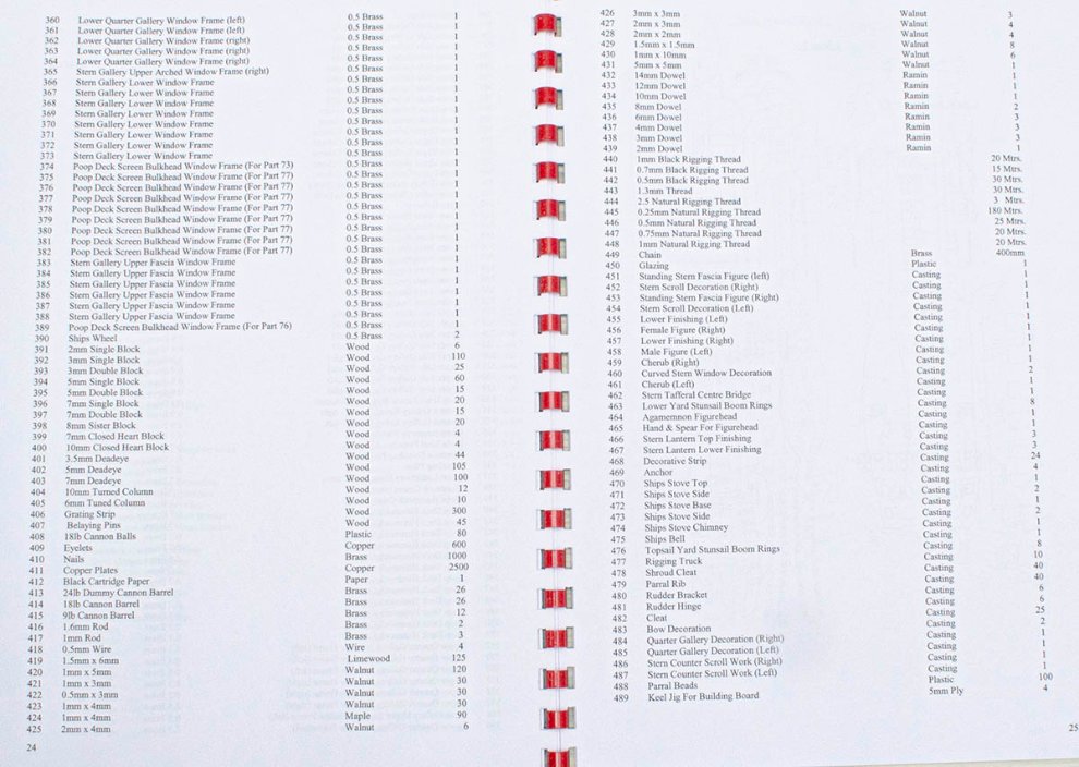 평범한 목범선용 설명서네요. 그림이나 만드는 순서는 위의 9장짜리 거대한 1:1 사이즈 도면에 적혀 있어서 그걸 따라하도록 되어 있고, 이 책자는 문자로 각 부위를 어떻게 만들라는 것과 포함된 부품 리스트 정도만 적혀 있습니다. 알테사니아의 스텝 바이 스텝 그림 설명서가 그리워지긴 합니다만, 전문적인 프리미엄급 목범선 설명서는 원래 다들 이러니 목범선의 세계를 파고 들수록 쉬운 접근성은 포기하심이 좋습니다.
