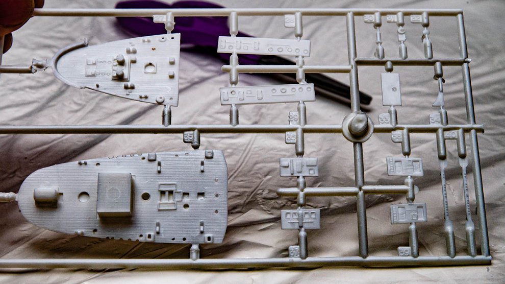 다른 부품들도 디테일이 굉장합니다. (윤곽을 드러내기 위해 과장한 사진입니다.) 저걸 도색할 수만 있다면 1/350 스케일에서도 표현할 건 전부 표현할 수 있을 듯 합니다. 역시 공산권 국가였던 러시아가 모형 강국이긴 하네요.