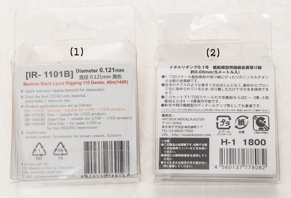 1/450 스케일 범선을 만들다가 가장 얇은 리깅선을 찾아보게 되었습니다. 총 세가지 종류인데요.