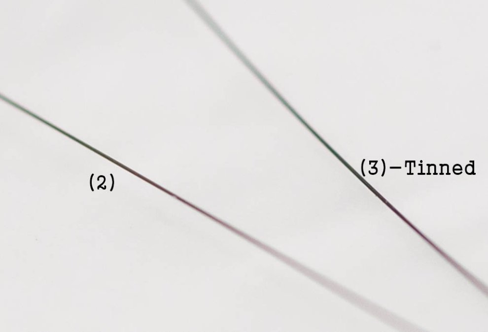 (3) 몰리브데넘 와이어의 기본색은 트러블을 일으킬 소지가 있는 좀 더러운 금색입니다. 구리색도 아니고 황동색도 아니고 10K 저질 가짜 금이라고 생각하시면 됩니다. 그러면서 유광으로 아주 반짝거리기 때문에 모형용으로는 취향을 많이 탈 색상입니다.