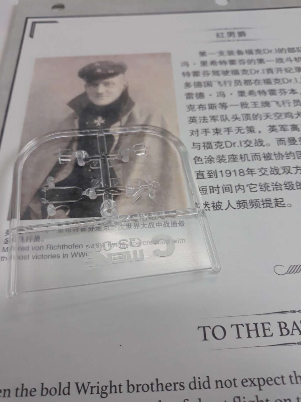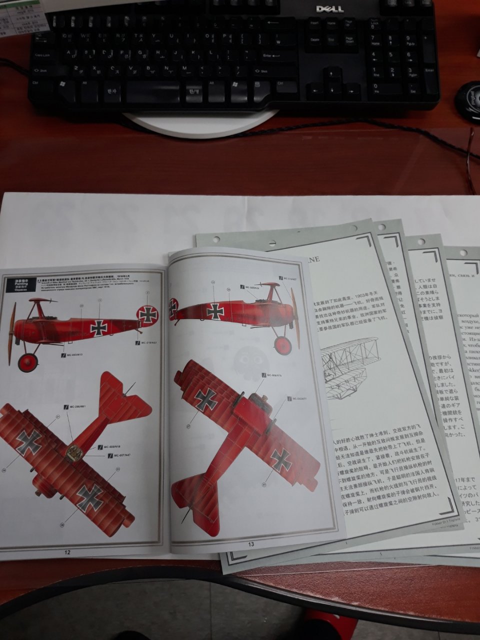회색 플라스틱 112부품, 투명플라스틱 4개부품, PE파트 데칼, 1/10 리히토펜 남작의 흉상, 4가지 마킹옵션데칼, 설명서로 구성 되어 있습니다.