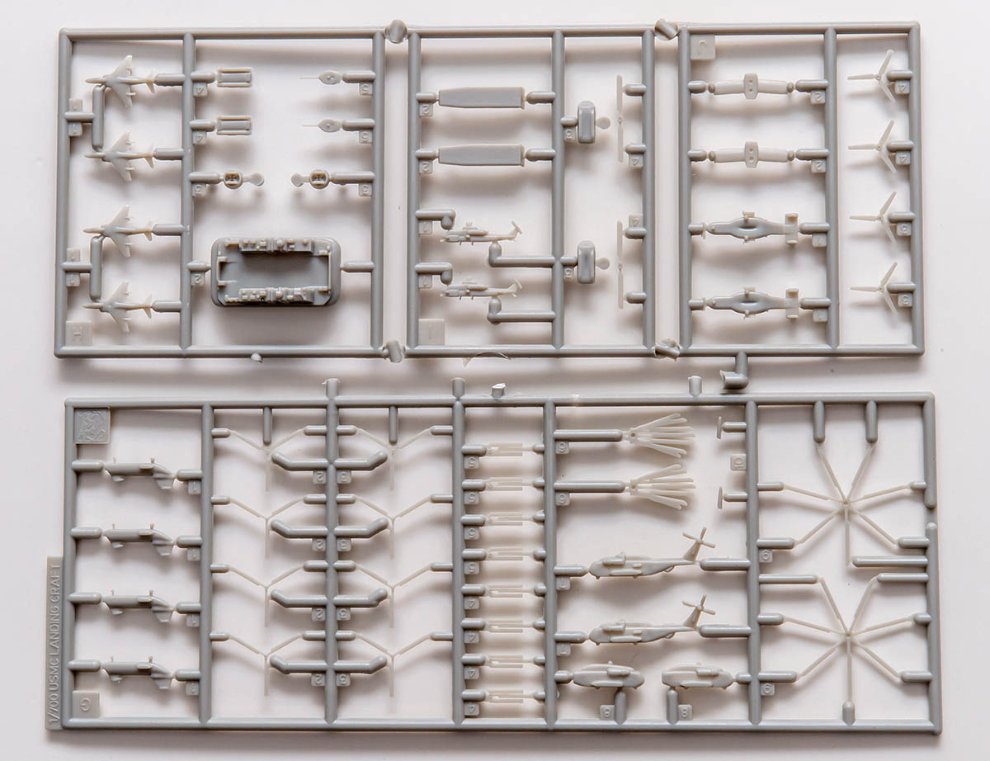 열어보면 실망하지 않을 수 없는데요. 1990년 금형, 중국제라는 걸 떠올리시면 이해하실 겁니다. 2013년에 나온 Trumpeter 자회사 HobbyBoss 의 Wasp Class 수준과 비교도 안됩니다.