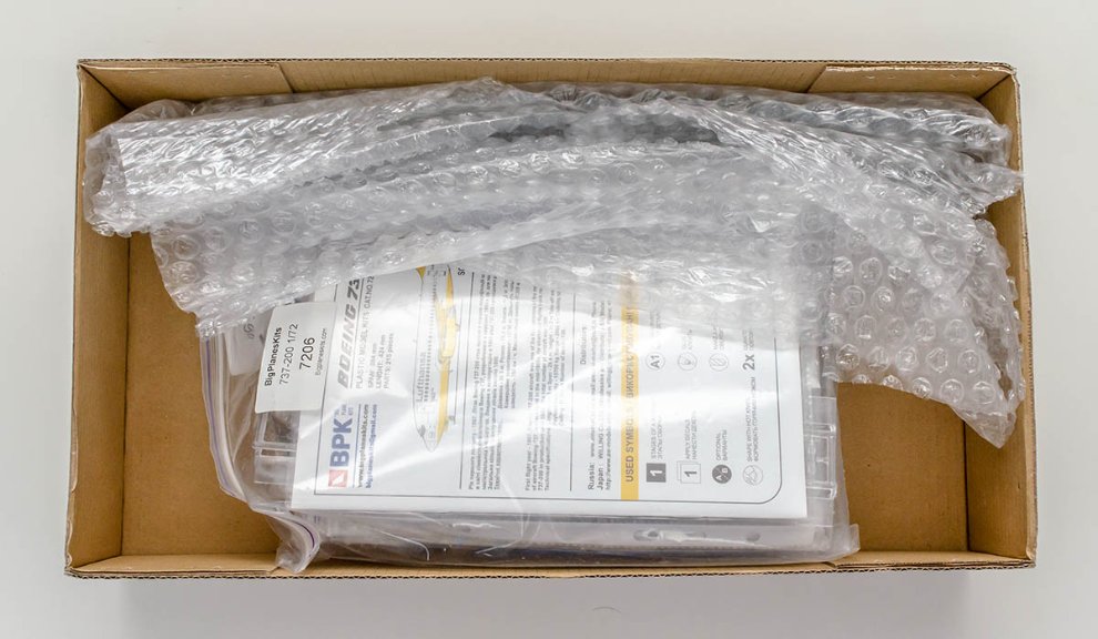 박스는 395 x 215 x 80mm 로 의외로 작았습니다만, 그건 737-200 이라서 그런거지 여객기로서 1/72 는 엄청나게 큰 스케일이라는 걸 염두에 둬야 합니다. 회사 이름부터가 BPK 인거죠.