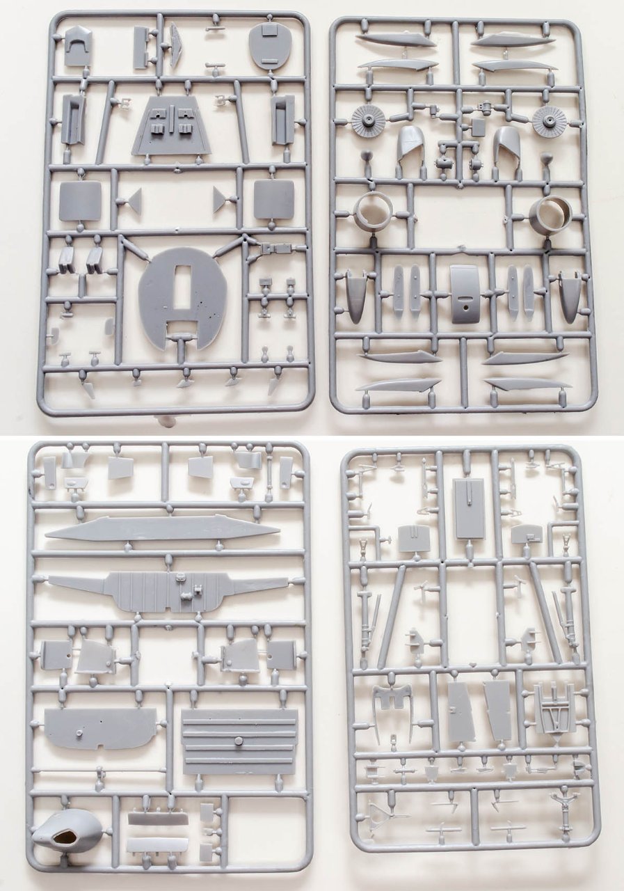뽁뽁이로 감싸진 커다란 동체가 반깁니다. 조형 수준은 수년간 반복 생산하면서 마모된 금형 덕분인지 패널라인이 거의 다 마모되어 있고, 동유럽 특유의 어두운 회색 플라스틱의 꺼끌꺼끌한 표면도 썩 기분좋지 않습니다. 가운데 긴 직사각형이 거친 건 처음부터 파내도록 되어있는 설계라 대충 만들어져서 그렇습니다.