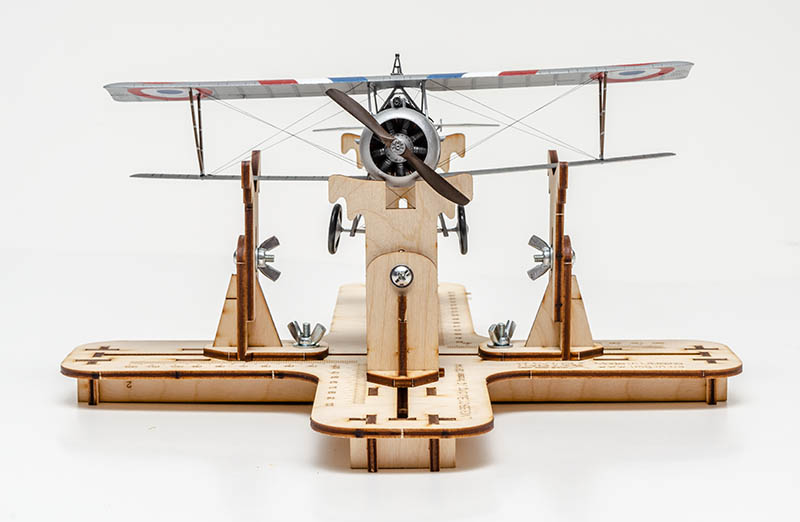 시범삼아 이전에 처음으로 만들어본 복엽기를 얹어봤습니다. 처음 세팅에는 좀 허둥거렸습니다만, 양쪽 날개의 눈금을 똑같이 해주고 동체가 붕 뜨지 않도록 올려주니 그럴듯하게 되었습니다.