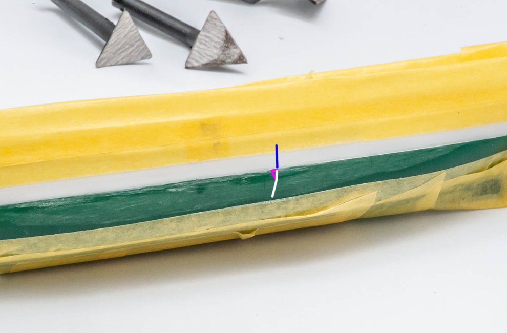 그렇지만 로터리툴로 작업하다간 진짜 난감해집니다. 원형으로 돌아가면서 갈아대기 때문에, 위와 같은 단차를 줄여야 하는 곳에서 작업각이 안 나오는 경우가 허다하고, 생각없이 마구 갈아대면 위 사진의 분홍색처럼 오목하게 갈아버려서 아예 망쳐버립니다.