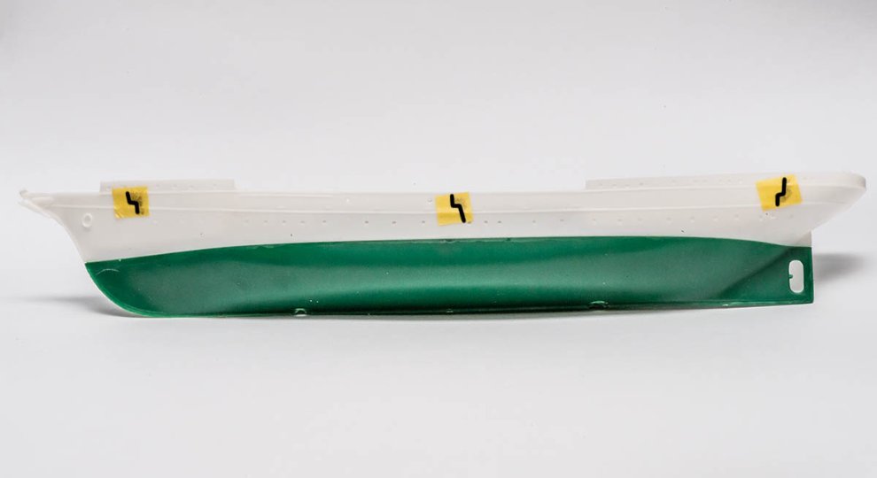 제가 구입한 진동툴 또한 만능은 아닙니다. 위 사진과 같이 퍼티 없이 그냥 덤벼들었더니 한계가 역력합니다. 주위를 아무리 갈아도 분홍색 부분은 살짝 움푹 들어가 있어서 한참을 더 작업해야 끝날 것 같아 그냥 멈췄네요. 이럴 땐 끝까지 가지 말고 잠시 멈춘 후 작업 개선을 위한 방법을 생각해보고 (퍼티를 바르고 다시 작업) 재작업하는게 좋습니다. 더 작업하다간 선체 벽이 얇아져서 뚫릴 수 있으니까요.