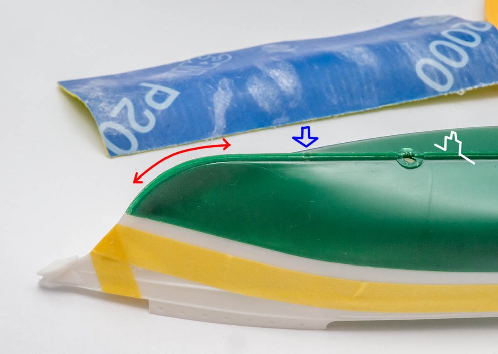 빨간색 같은 곡선부분 지느러미는 유연하고 튼튼한 3M 스펀지 2000방 사포를 써서 마무리해줍니다.