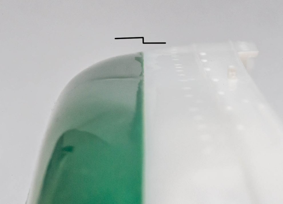 사진의 노란색은 아래의 접합면에 단차가 저렇게 나 있다는 표식입니다. 비행기나 배같은 걸 조립할 때 가장 큰 골칫거리는 평탄해야 할 부분에서 단차가 크게 발생할 때 입니다. 특히 비행기는 단차 주위에 패널라인이 어지럽게 나 있으면 퍼티질도 까다로워서 골때리죠.