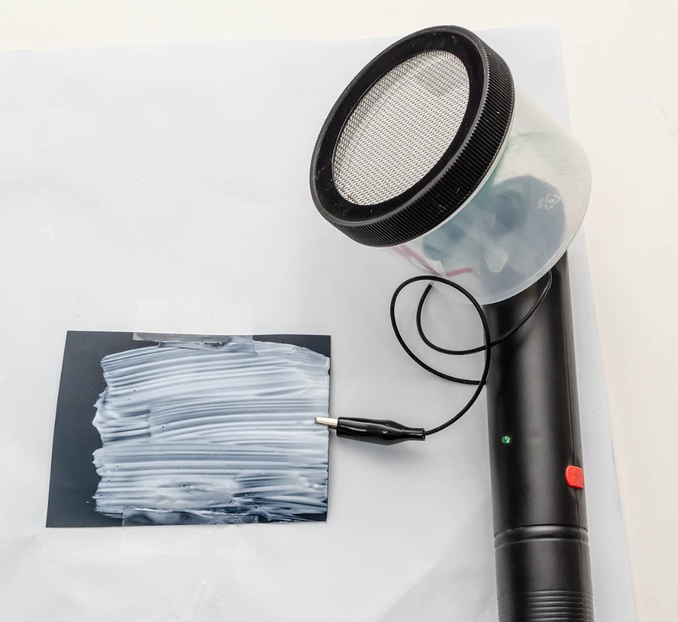 이 제품의 이름은 Static grass applicator, 직역하면 정전기 잔디 심는 기계입니다. 유튜브 상으로는 대략 15년 전에 나온 철덕 모형 잡지에서 소개된 것이 처음으로 보이며, 보다시피 오직 모형만을 위해 고안되고 만들어진 멋진 도구입니다. (1970년대까지 올라간다고 합니다)
