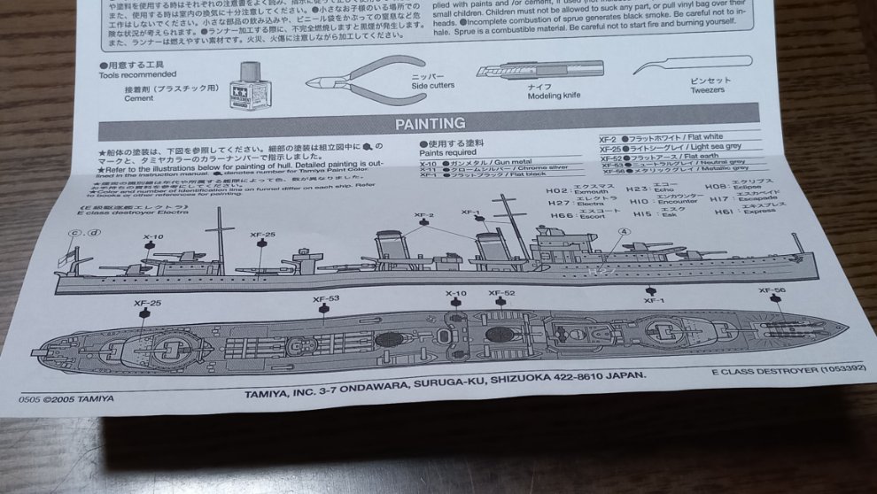 저의 첫 함선 모형입니다. 미리 몇 달전에 영국 해군 모형에 필요한 선체 색깔(연한 버젼과 진한 버젼 2가지를 모두 준비했죠.), 갑판 색깔을 표현할 지정색들을 구해놓아서 다행입니다.