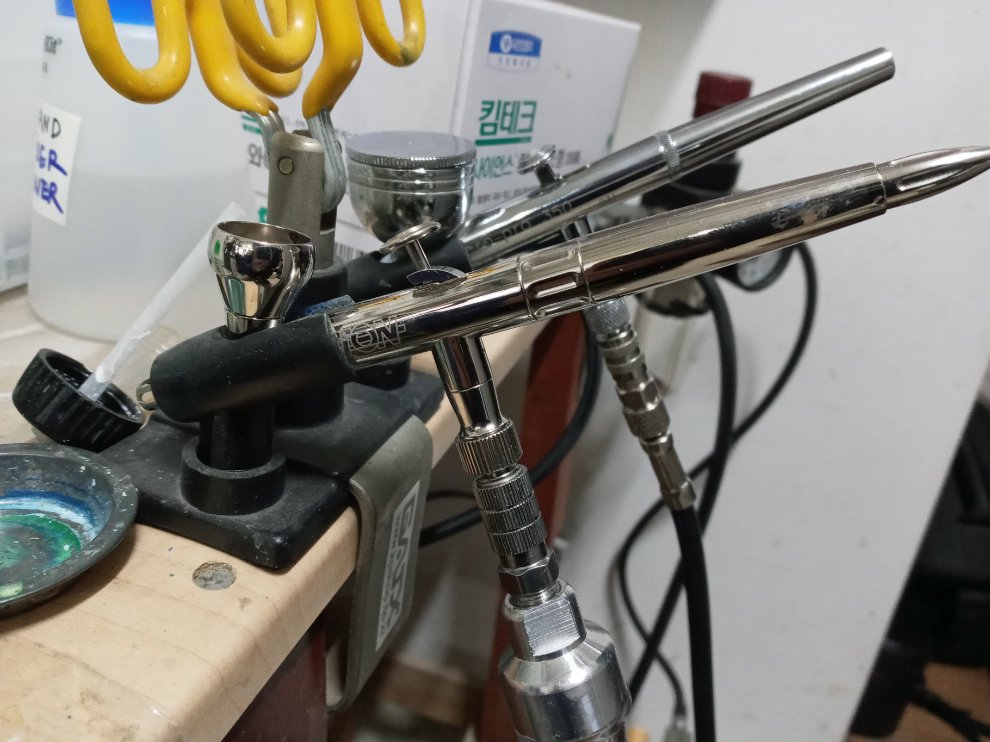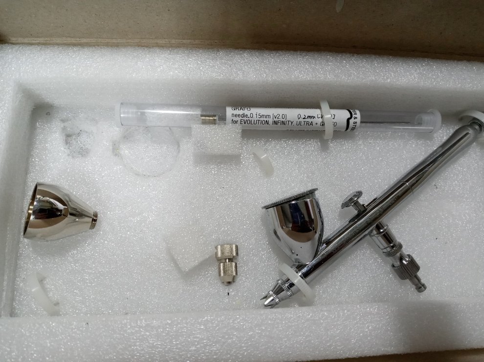 그 다음 0.15미리 노즐과 니들을 구입했습니다. 니들캡, 노즐캡은 그대로 사용 가능합니다. (에볼루션 실버라인과 인피니티 에어브러쉬는 서로 노즐과 니들을 교환해가면서 호환 가능하게 사용하도록 설계되어 있습니다.)