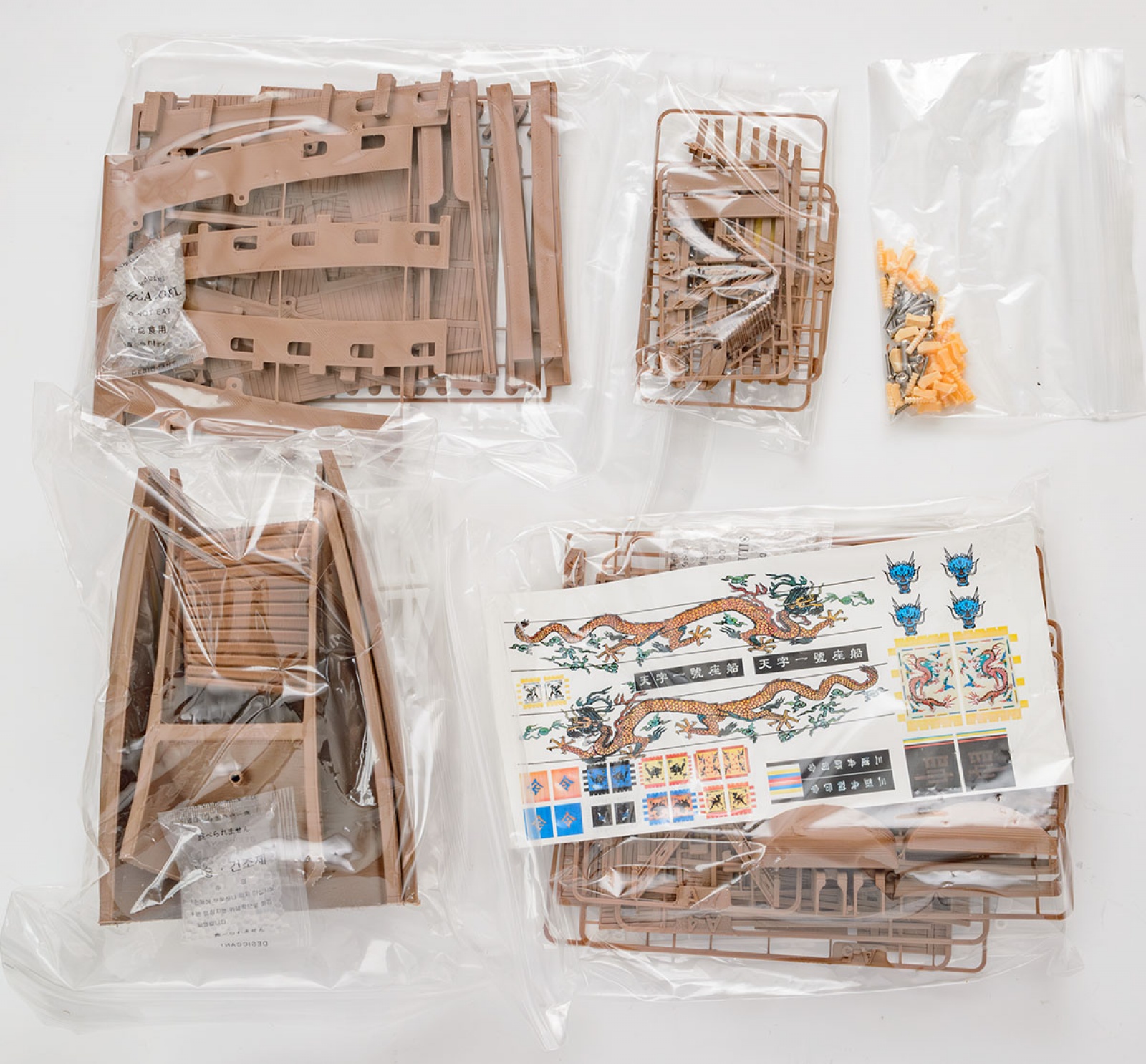 왼쪽은 참수리 고속정입니다. 오른쪽은 노량 판옥선으로 대형 판옥선입니다. 둘 다 1/87 스케일이며 길이가 45cm 가량으로 상당히 큽니다. RC 개조 옵션도 있지만 지금은 판매 중단 상태입니다.