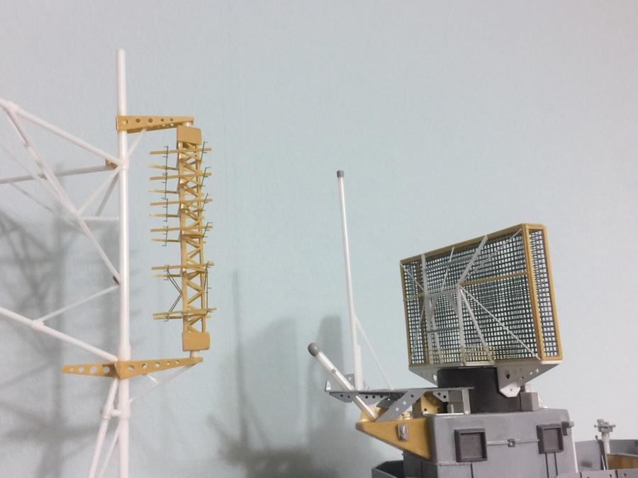 마스트의 13호는 접착했고, 함교상단의 21호 전탐은 아직은 도색의 편의를 위해 탈착식