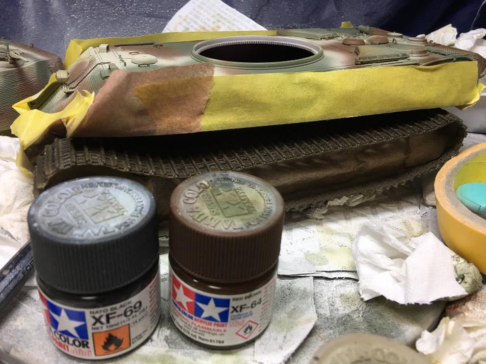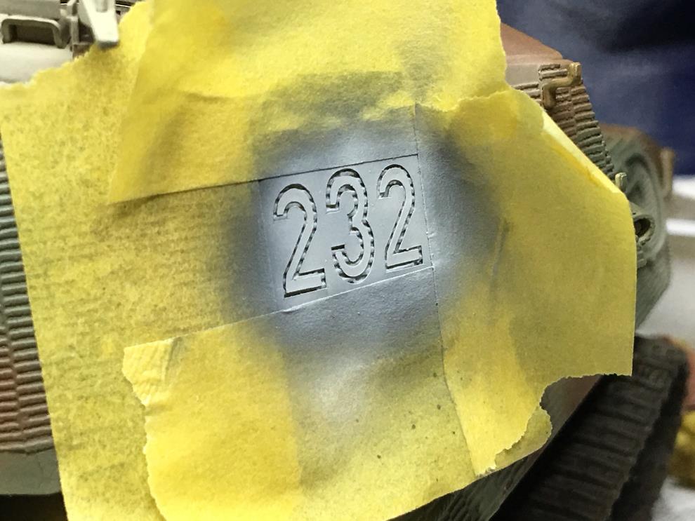궤도 마스킹을 하고 궤도색을 에어브러싱 해줍니다