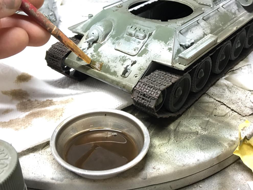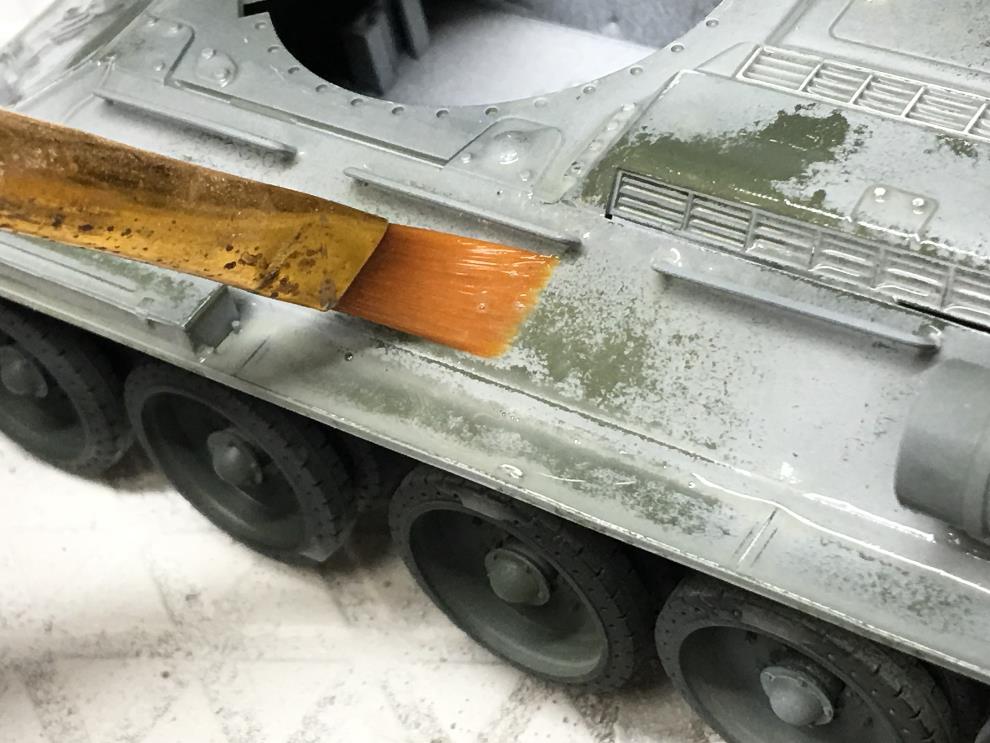동계위장이 많이 녹아내린 기본색을 올리고 싶어 위의 사진과 같이 AK의 Washable agenrt를 써봤습니다만,