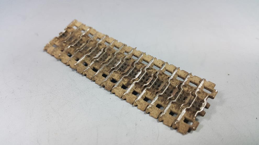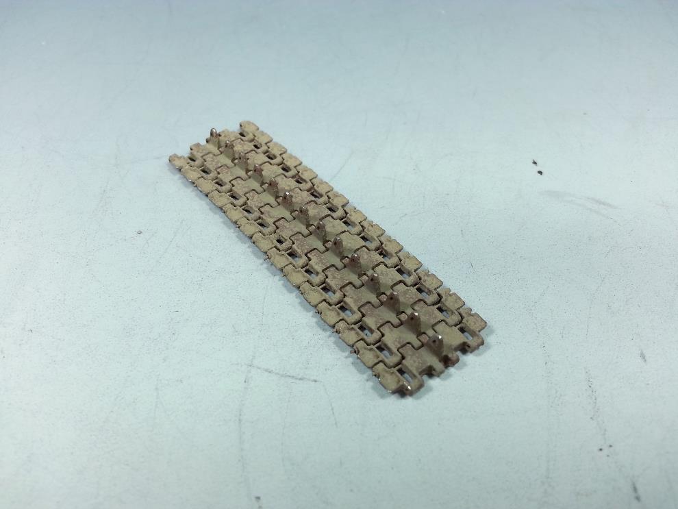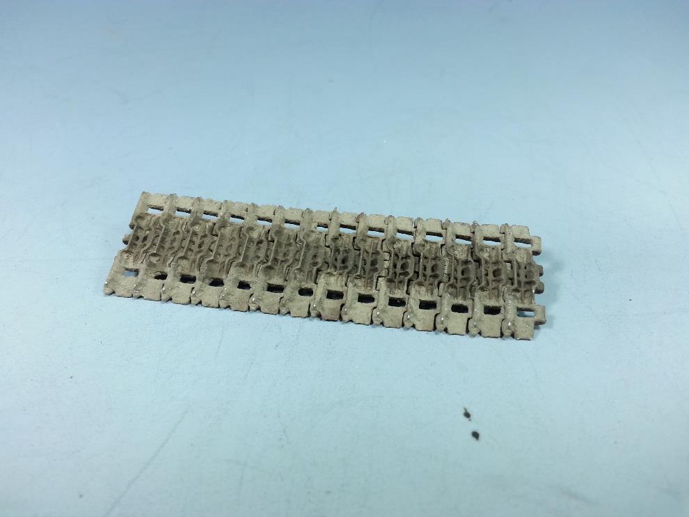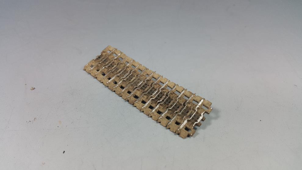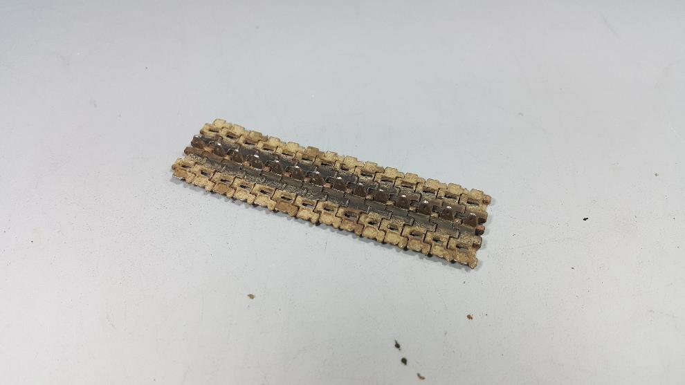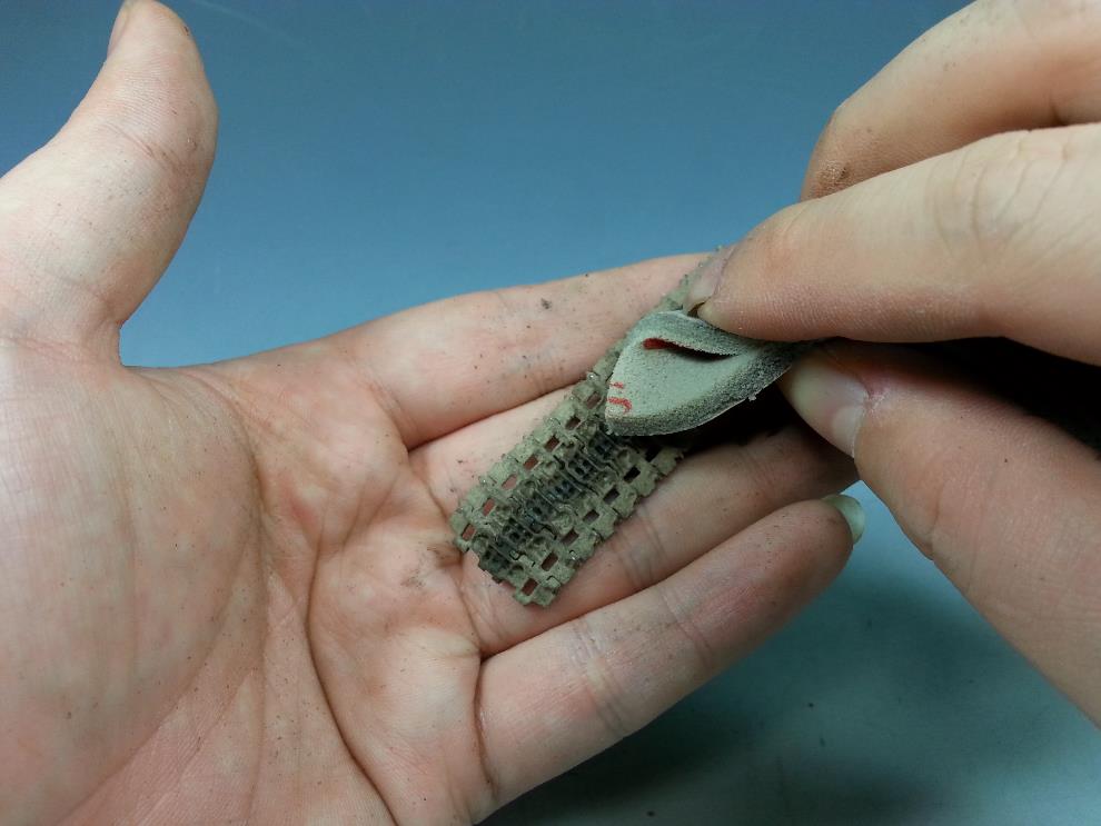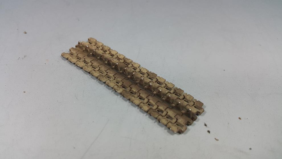 만약 플라스틱이나 고무 궤도라면 같은 방법으로 사포를 이용해 갈아준 후 지면과 가장 많이 닿는 부분(요철부)에 연필이나 은색 에나멜 등을 이용하여 금속 질감을 내주시면 됩니다.