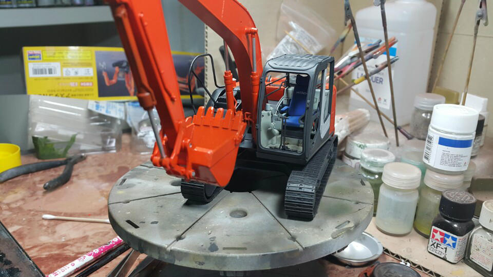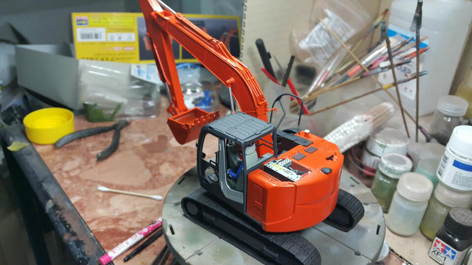 작년부터 진행하던 하세가와 아스타코네오를 굴삭기버전인 ZX135US로 개조작업을 마치고 도색을 진행했습니다.