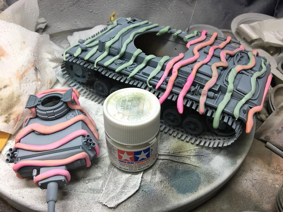 단색이 아닌 이러한 어지러운 위장무늬는 데칼의 실버링을 감추는데 아주 탁월합니다