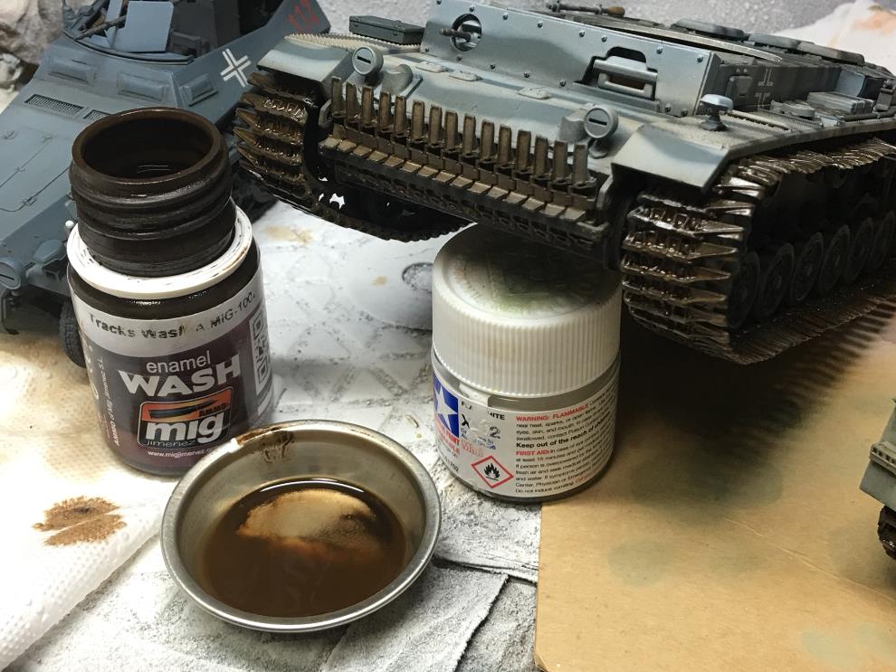 사진의 궤도워싱 도료를 원액 그대로 쓰지 않고 약간 희석하여 쓰는 편입니다