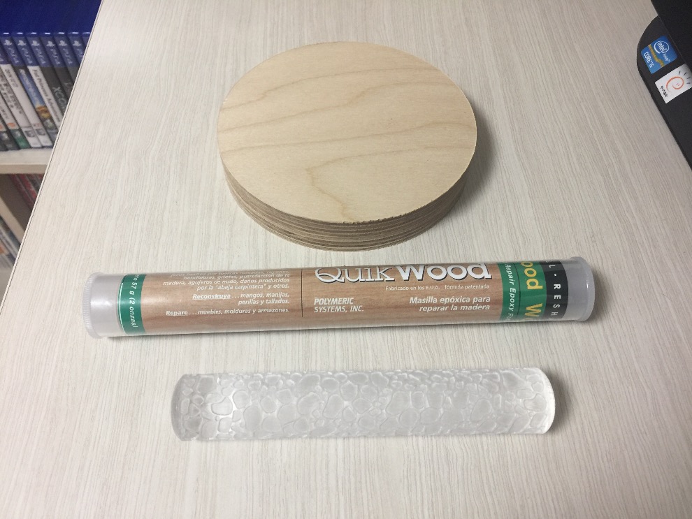 준비물은 베이스 나무판과 에폭시 (저는 목공용 믹스앤픽스를 사용했습니다) 그리고 롤러 핀입니다.