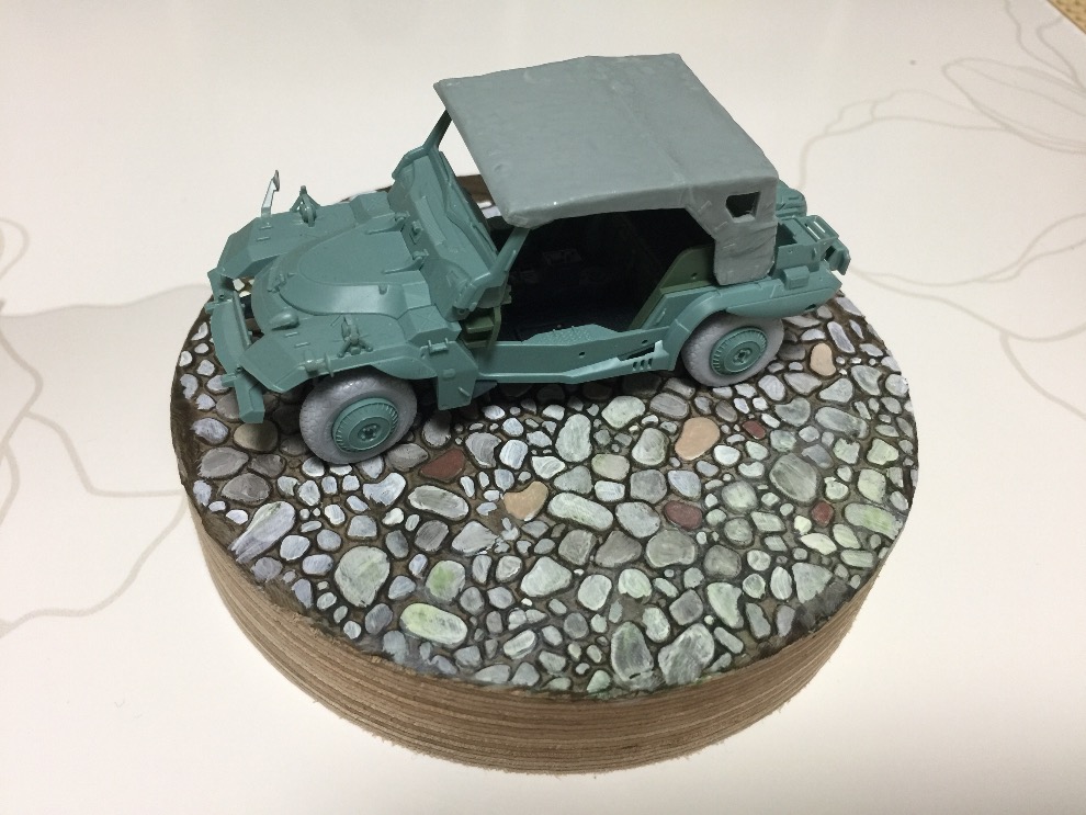 사진의 차량은 건담에 나오는 지프입니다만 통상적인 1/35 지프랑 거의 같은 사이즈라 보시면 될 것 같습니다.