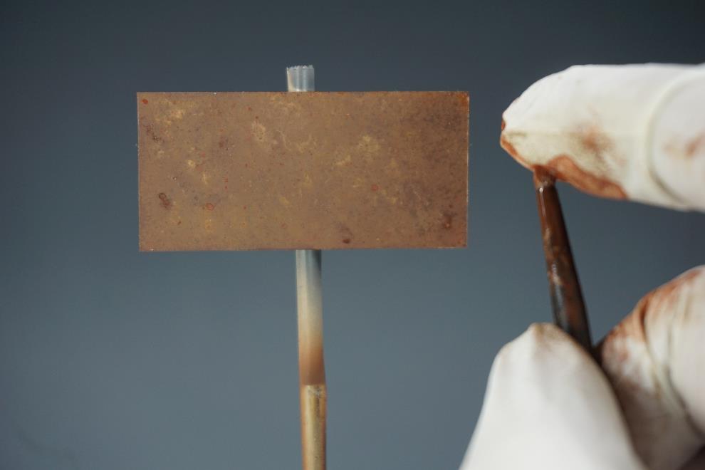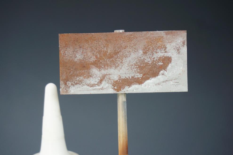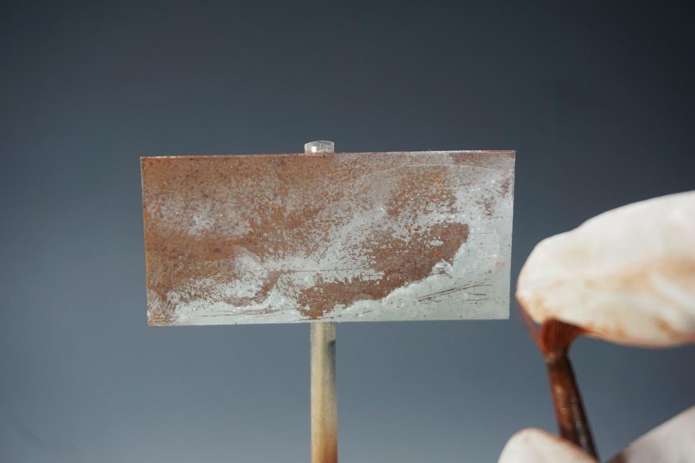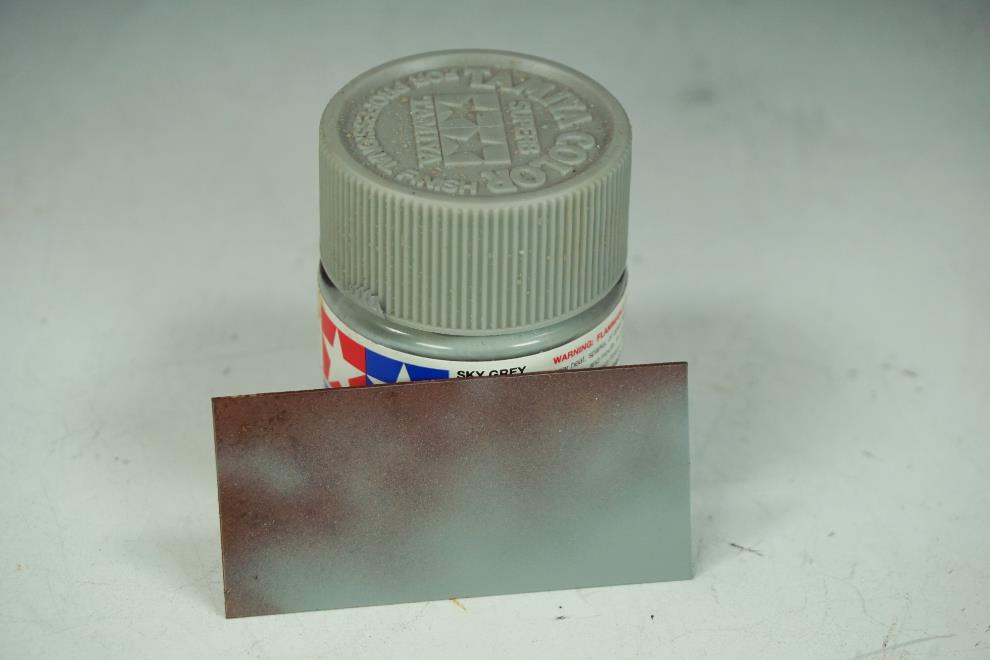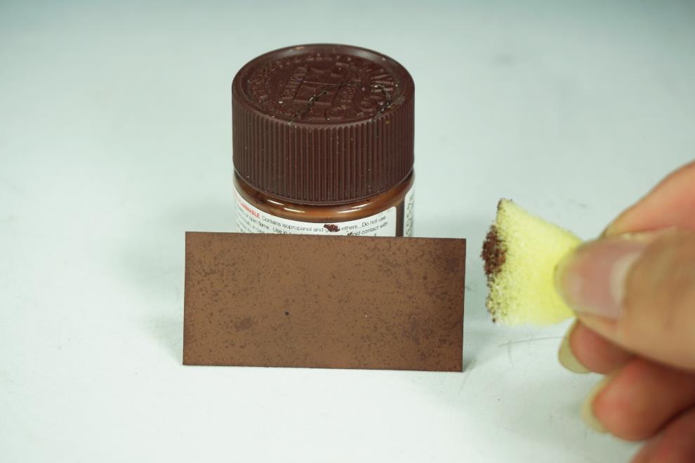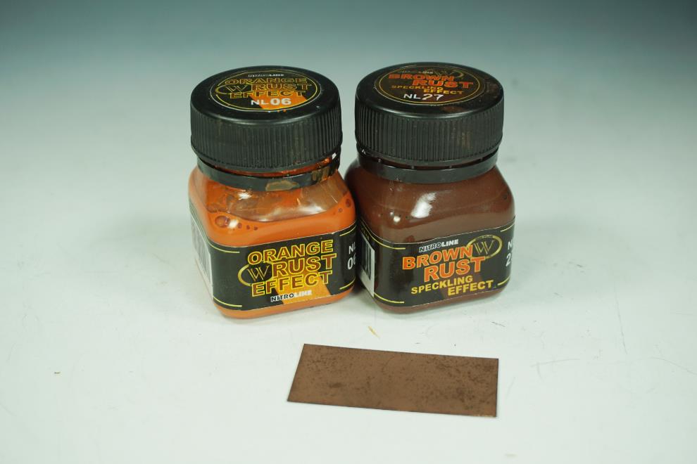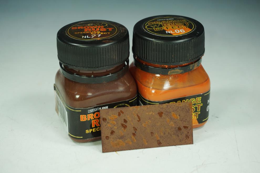 아까와 같은 방법으로 브라운 러스트와 라이트 러스트를 섞은 도료를 시너에 희석해 붓으로 튀겨줍니다.