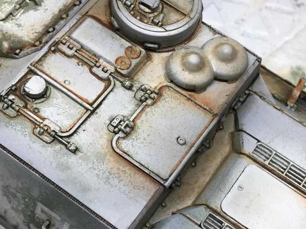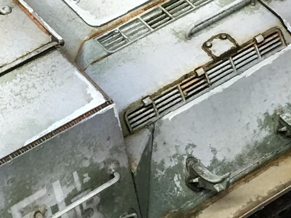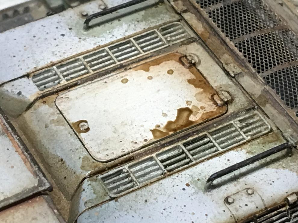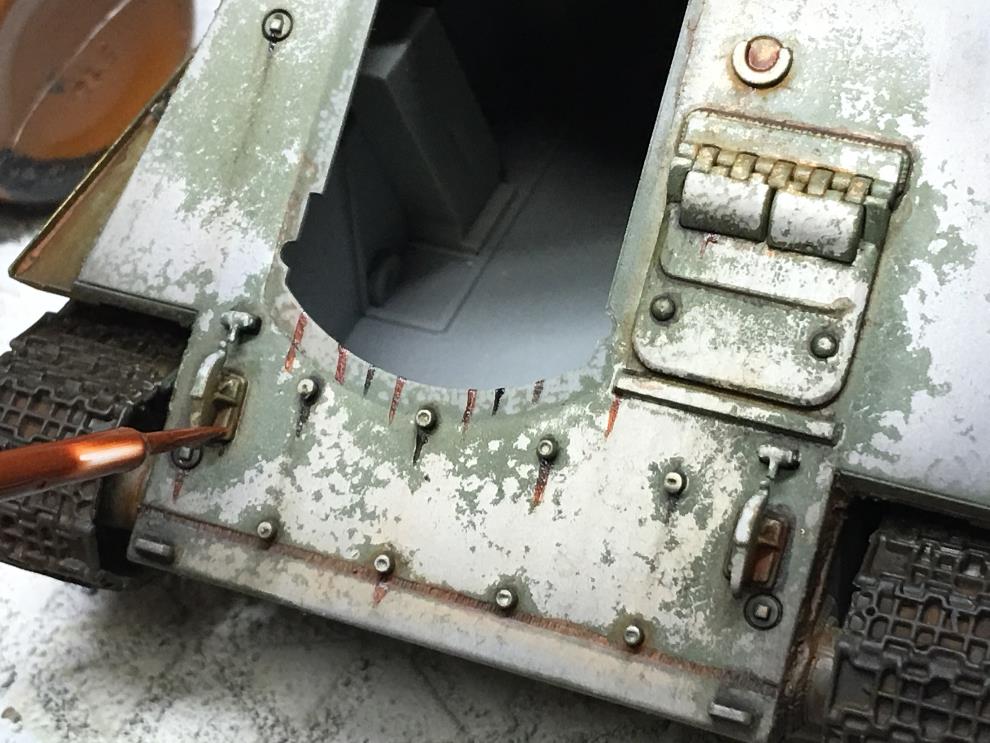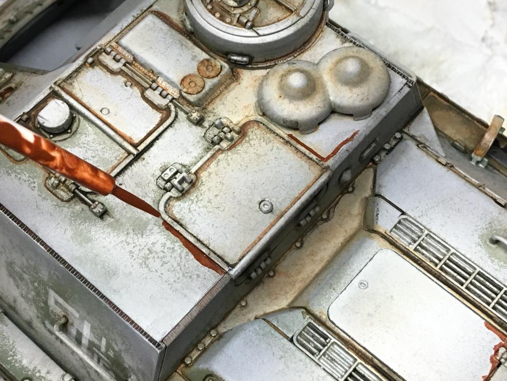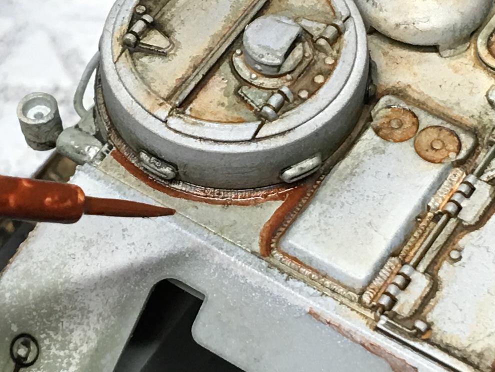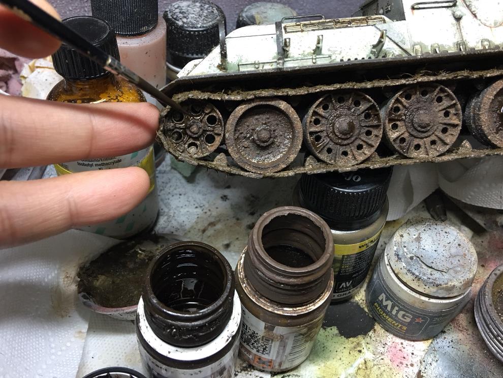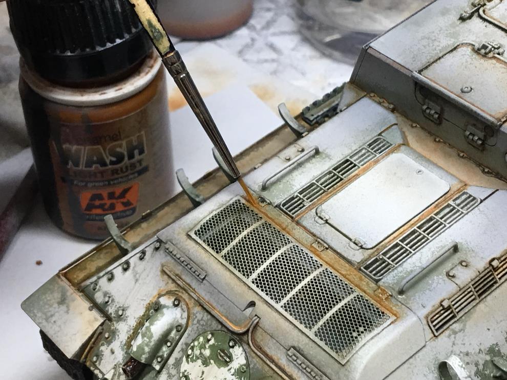 예를 들어 사진과 같이 rust wash 같은 경우도 유화물감 번트시엔나, AK사의 rush wash, Rustall의 녹표현제 등 여러가지를 사용합니다