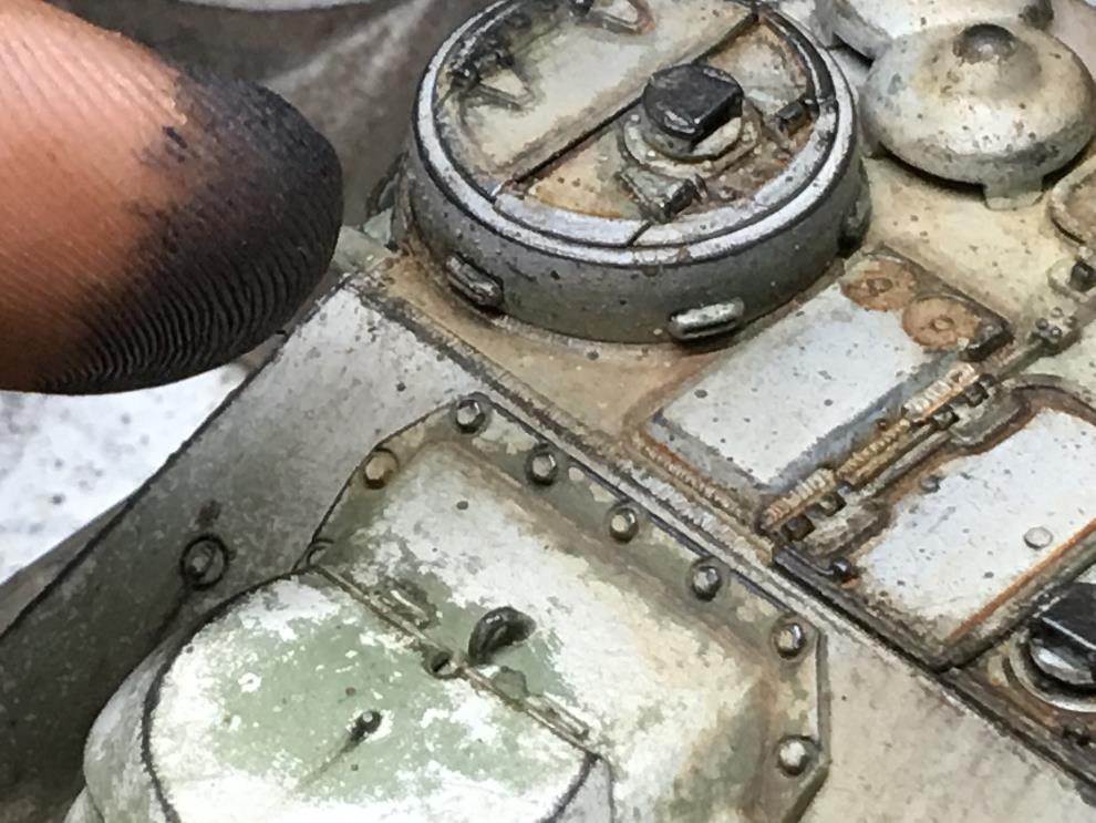어두운계열 에나멜로 (사진은 aK의 다크머드와 트랙워시) 궤도안쪽에 휠의 중심부분을 기점으로 살짝 워싱해줍니다