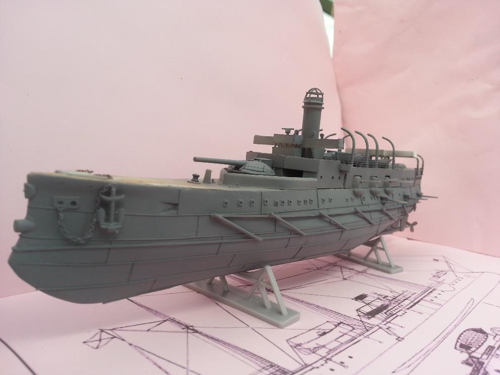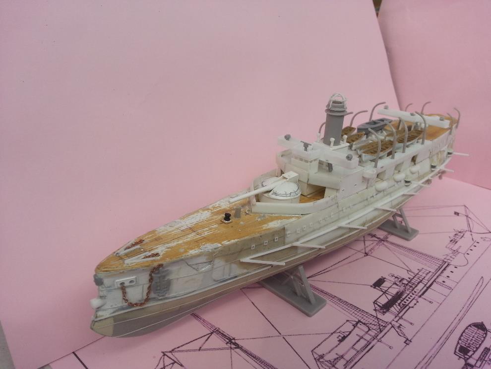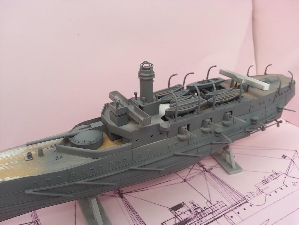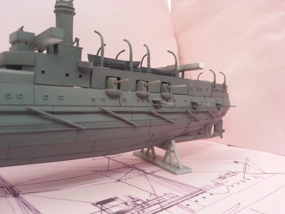 러일전쟁 버전에 방뢰망이 있는지는 모르겠습니다. 자료나 작례 마다 어떤 것은 있고 어떤 것은 없기도 해서 미카사나 당시 러시아 군함들의 경우도 방뢰망을 설치했던 것을 참고해서 장착해줬습니다.