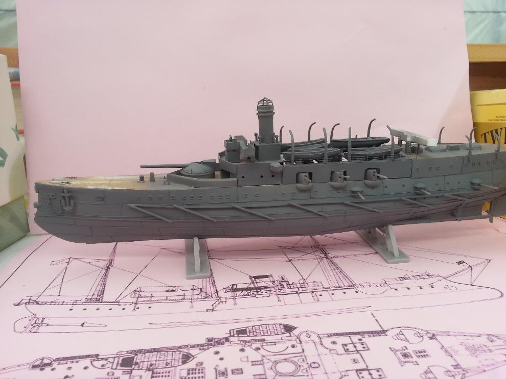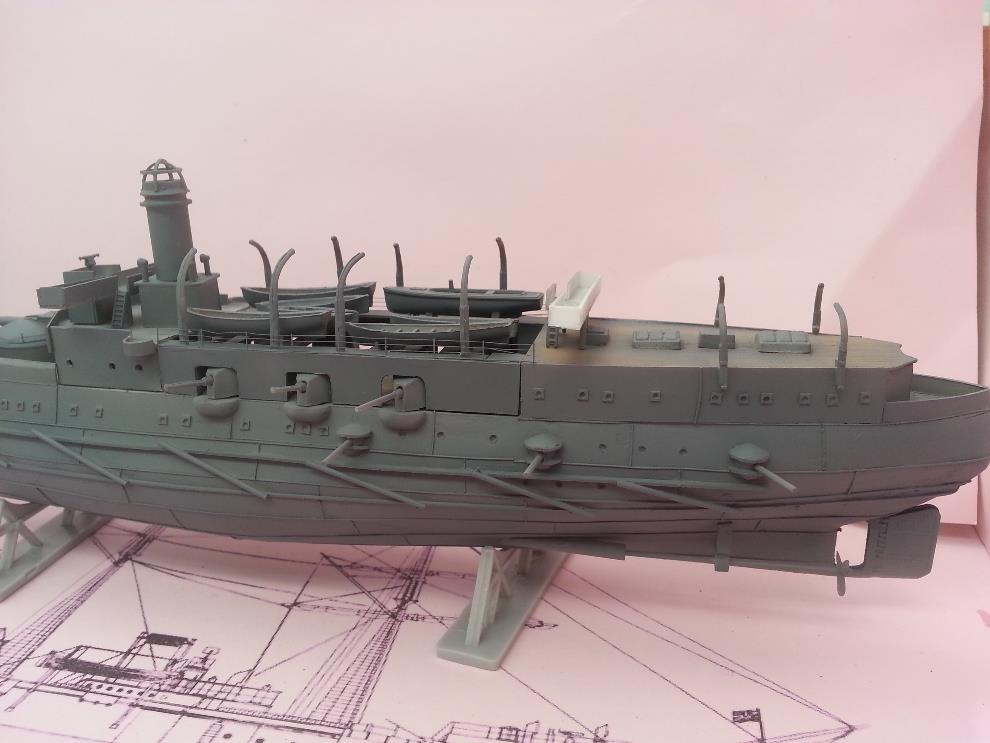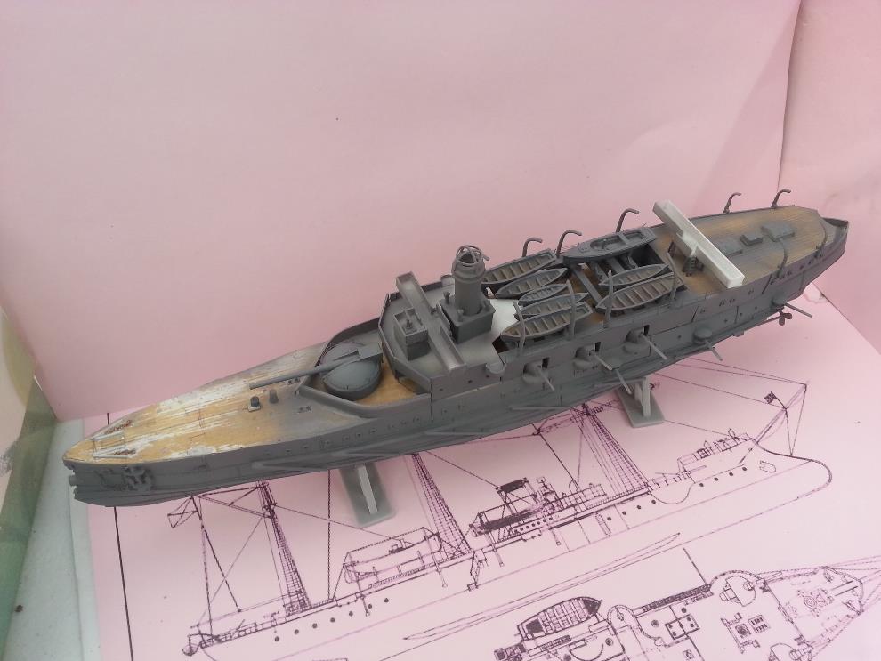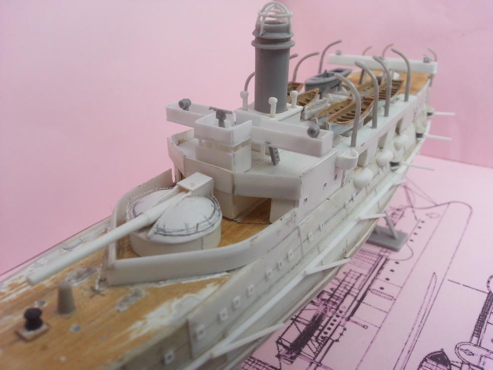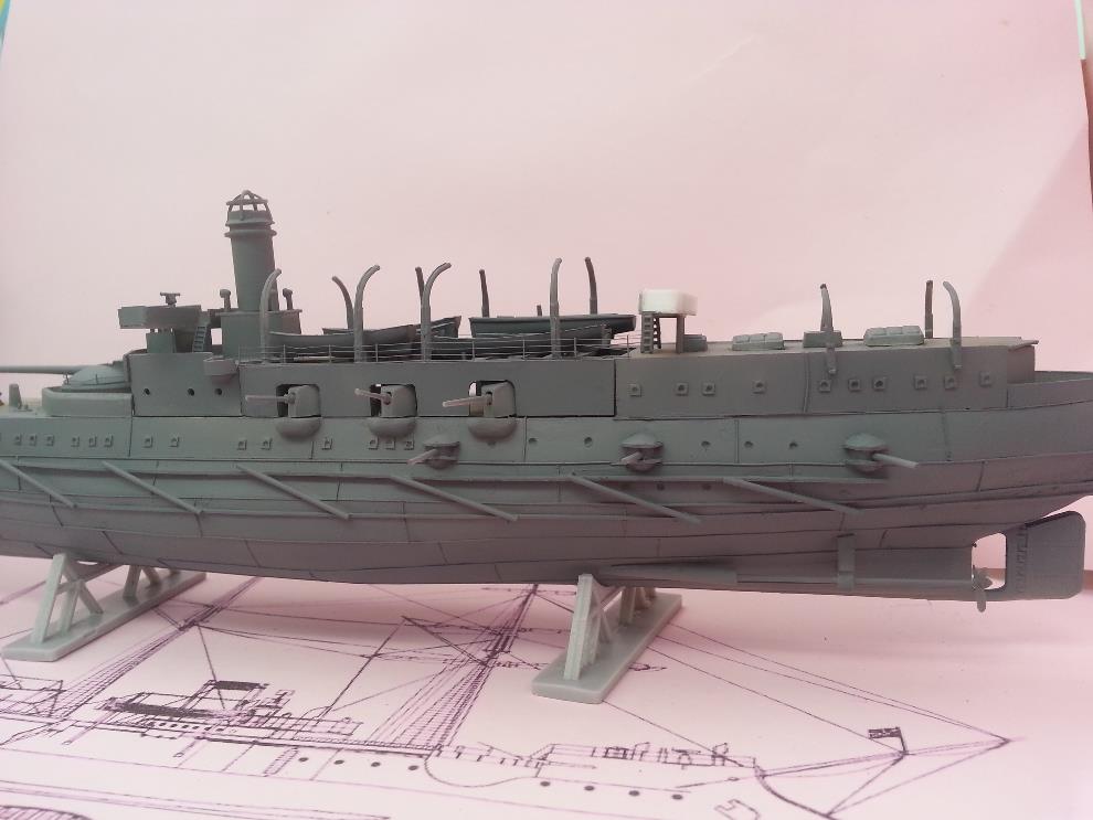 러일전쟁 버전에 방뢰망이 있는지는 모르겠습니다. 자료나 작례 마다 어떤 것은 있고 어떤 것은 없기도 해서 미카사나 당시 러시아 군함들의 경우도 방뢰망을 설치했던 것을 참고해서 장착해줬습니다.