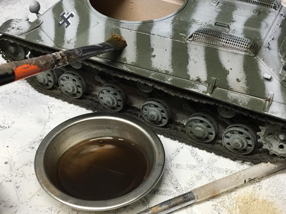 대략 2분 후에 유화희석제에 약간 적신 평붓으로 쓸어내립니다