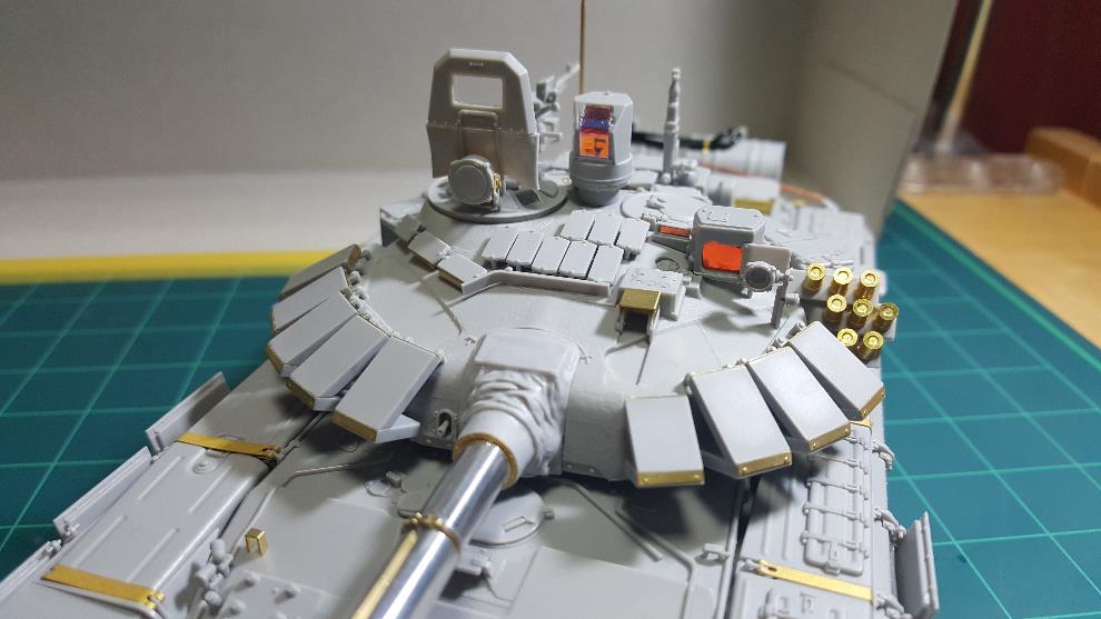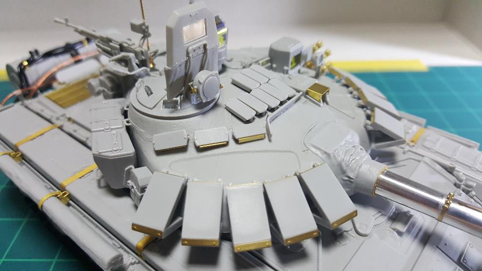 포탑은 그나마 조립 난이도가 조금 쉬운 편이긴 하지만 콘탁트-5 상하면의 에칭부품 자리잡기가 좀 힘들고