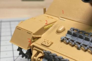 1,2,3은 각각 전방 펜더와 그 부분쪽에 키트에 생략된 부분을 자작으로 뗌질했습니다.